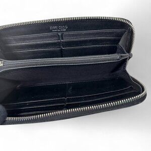 JIMMY CHOO Long Black Leather Zippered Wallet - Star Studded