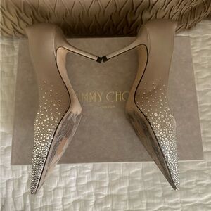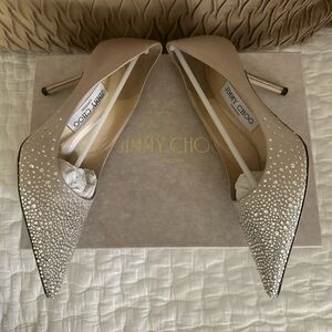 Authentic Jimmy Choo Love 85 Pump with crystals on satin. Size 36 1/2. Used only once for my wedding. Retail $1295 plus tax