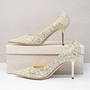 Jimmy Choo Love 85, Size 38 EU (8 US) Moon Sand Glitter Heels