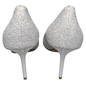 Jimmy Choo Love 85 White Coarse Glitter Heels EU 40.5 Slip On Wedding Pumps