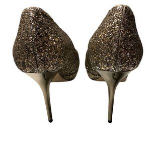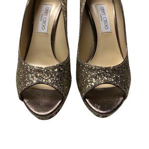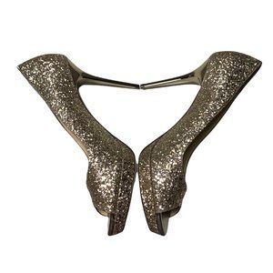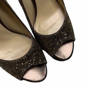 Jimmy Choo Luna Glitter Heel Peep-Toe Pumps size 40.5