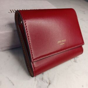 Jimmy Choo MARINDA Dark Red Leather Wallet Trifold Full Set