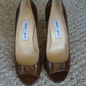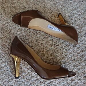 Jimmy Choo MOCHA BROWN WITH GOLD tone heels size 37
