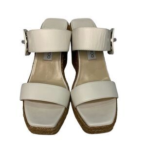 Jimmy Choo Melian 110mm Mules EU 40 Latte White Platform Wedge Leather Sandals