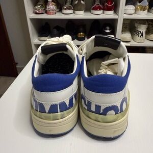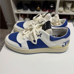 Elevate your look with these stylish Jimmy Choo sneakers. Bold blue and crisp white design. Ideal for casual wear.