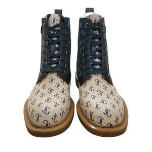 Jimmy Choo Mens Turing Lace Up Combat Boots Logo Monogram Blue Ankle 7.5 40.5