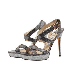 Jimmy Choo Metallic Grey Glitter Vamp Platform Sandals. Size 39.5