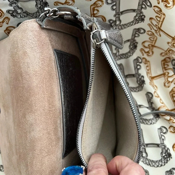 #JimmyChoo #JimmyChooBag #DesignerBag #CrossbodyBag #MetallicLeather #LuxuryStyle #StatementBag #SilverBag #PoshFinds #LuxuryResale