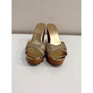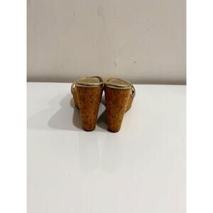 Jimmy Choo Metallic Patent Leather Prima Cork Wedge Platform Sandals Gold Womens 7.5