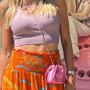 Elegant mini bag with a metallic finish. Features a stylish chain strap. Iconic JC logo detail. Brand new ! With original box and bag featuring a drawstring closure and a detachable chain. With C.O.A card as well.