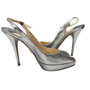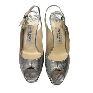 Jimmy Choo Metallic Python Embossed Leather Nova Slingback Pumps Size 38.5 / 7.5