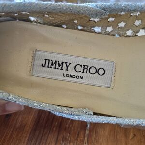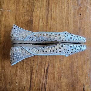 Jimmy Choo Metallic Silver Leather Flats Star Laser Cutout Napa Ballet EU 37.5