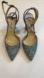 Jimmy Choo Micky 85 Coarse Glitter Ankle Block Heel Pumps Denim Mix Size 40