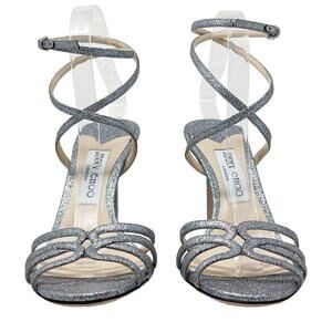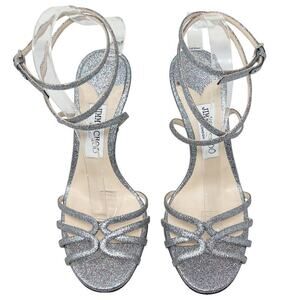 Jimmy Choo Mimi 100 Glitter Silver Strappy Stiletto Sandals Size 39
