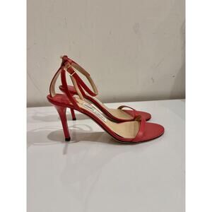 Jimmy Choo Minny 85mm Ankle Strap Heeled Sandals Red Leather Women's EU 37.5