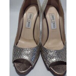 These champagne-colored shoes are adorned with glitter and metallic accents, adding a touch of glamour to any outfit. They are available in US shoe size 5.5 and EU shoe size 36.