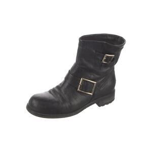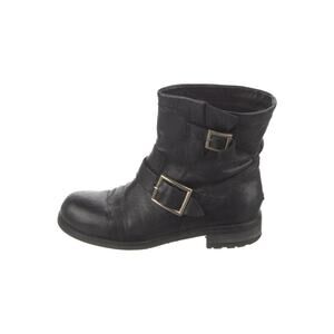 Jimmy Choo Moto Boots Black Leather Buckle Strap Women’s Size 38 Ankle Booties