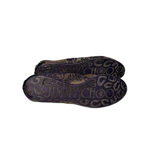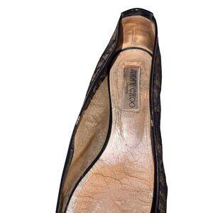 Jimmy Choo Navy Blue Lace Ballet Flats Patent Bow Detail