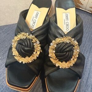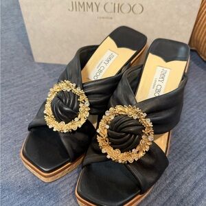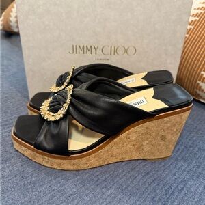 ✨ Excellent pre‑owned Jimmy Choo Nevara 90 wedge sandals in black nappa leather.