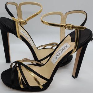 Jimmy Choo New Black and Gold Platform Pump/Strappy Sandal