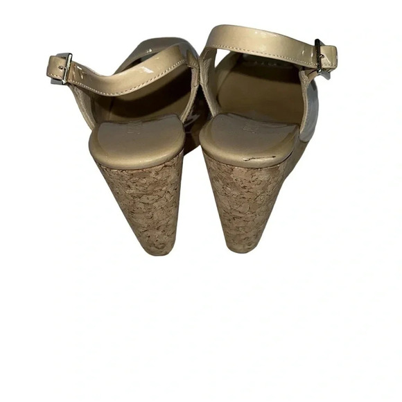 Jimmy Choo Nude Patent Leather Peep Toe Platform Wedge Sandals Size 35.5