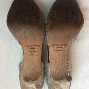 Add some sparkle to your wardrobe this holiday season. These Jimmy Choo silver heels will finish off any outfit! Original dust bag included.