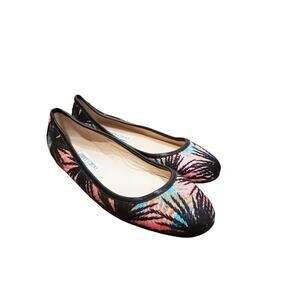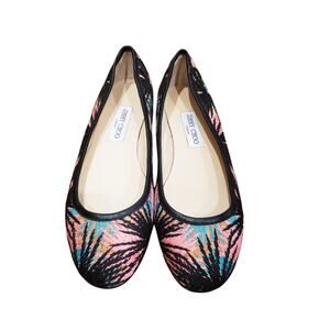 Jimmy Choo Palm Tree Print Embroidered Leather Ballet Flats Multicolor Size 8.5