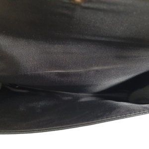 Jimmy Choo Parfums Black and Gold Clutch · Suede like material on flap and back · Shiny sparkly silk like material on the front · Protective plastic still on hardware, Approx. 9.5" × 6"× 1"