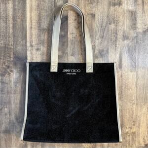 Jimmy Choo Parfums Black Velvet Gold Metallic Sparkle Drop Handle Lined Tote Bag