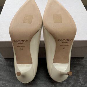 Jimmy Choo Patent Leather Pointy Toe Pumps, size 6 (IT 36), Ivory White