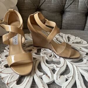 Jimmy Choo Patent Leather Wedge Heel Sandals Shoes
