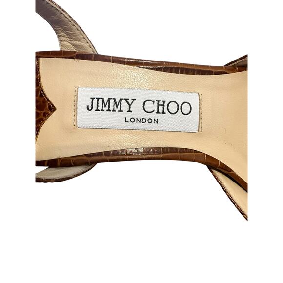 Jimmy Choo Peachy 125 Brown Croc Platform High Heel Sandals 39.5