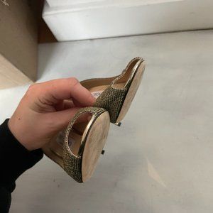 Jimmy Choo Peep Toe Pumps Sz 36.5 Gold Glitter High Stiletto Heels
