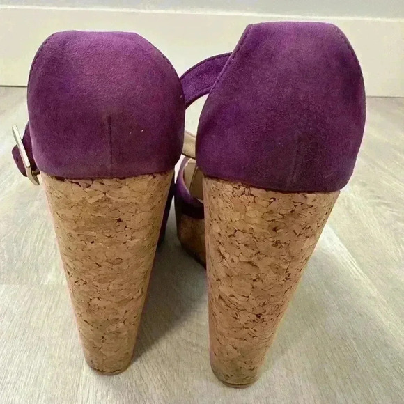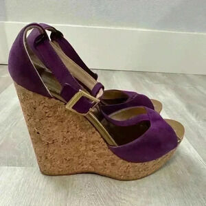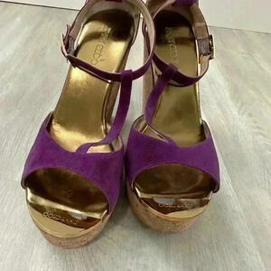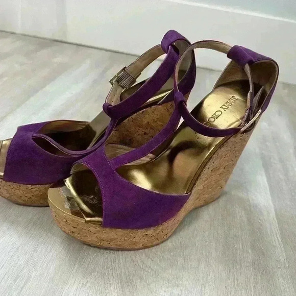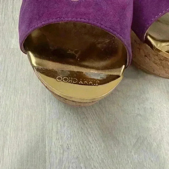 JIMMY CHOO, Purple Cork Wedge Sandals size 37.5 us 7