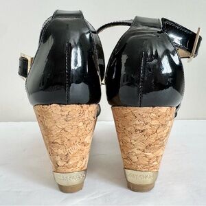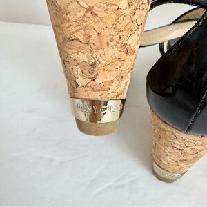 Jimmy Choo Portia 70 Black Patent Leather Cork Wedge