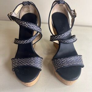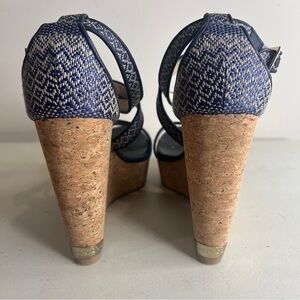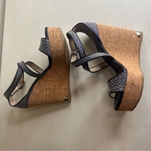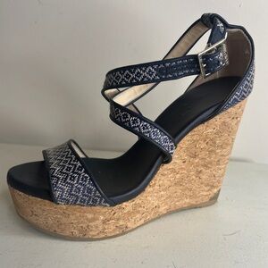 Jimmy Choo Portia Navy Leather Cork Wedge Sandals Women’s Size 38 EU