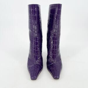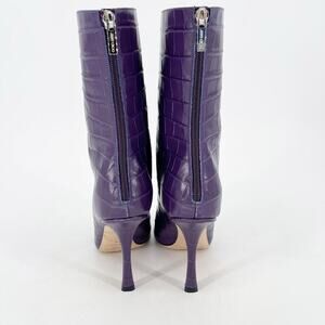 Jimmy Choo Purple Agathe Croc Embossed 100mm Mid-Calf Pointed Toe Boot IT 38