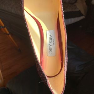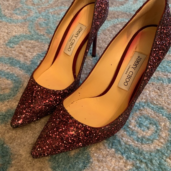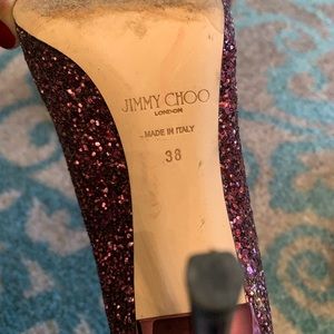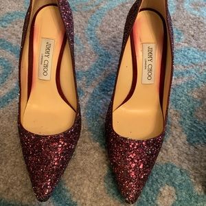Jimmy Choo Purple Romy Glitter Pointed-toe 100mm Pumps! Worn Once! The shoe color bled on the inside of the shoe but when you wear them no one sees that.
