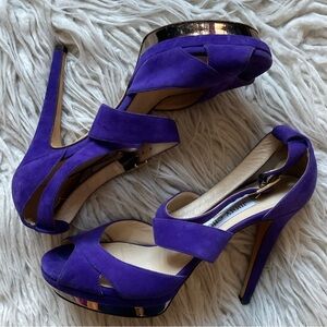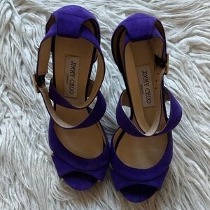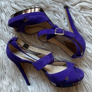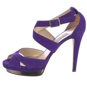 Jimmy Choo Purple Suede Leather Strappy Metallic Platform High Heel Sandals 38