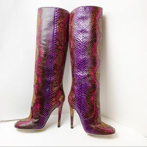 Vibrant colors amplify this head-turning silhouette, expertly crafted of genuine python and resting on a slender heel.