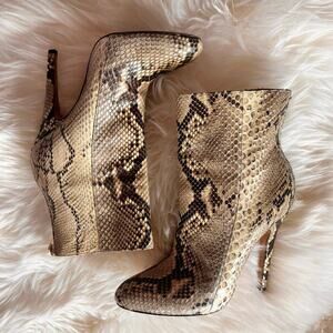 Jimmy Choo Python Boots Snake Skin Heels sz 38.5 booties zip up worn 1x euc