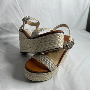 Jimmy Choo Raffia Wedge with Crystal Buckle - Size 39