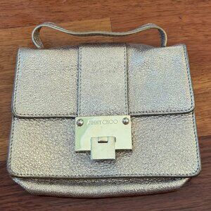 Jimmy Choo Rebel Mini Glitter Silver Leather Cross Body Bag Gold Snap