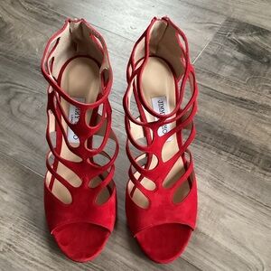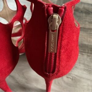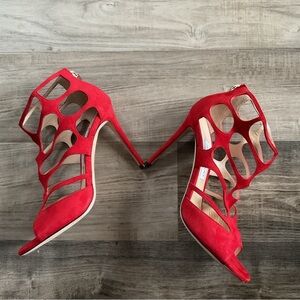Jimmy Choo Ren 100 Red Suede Caged Sandal EU 40