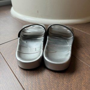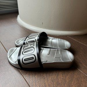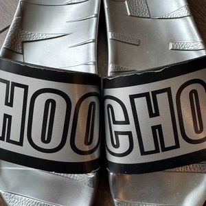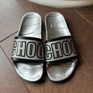 Jimmy Choo "Rey" Pool Slides Metallic Silver "Choo Choo" - Size IT 34 (US 4)
