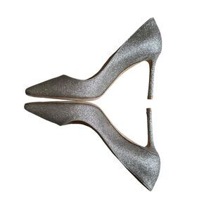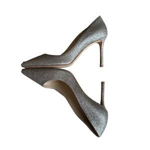 Jimmy Choo Romy 100 Silver Glitter Pointed Toe Stiletto High Heel Pumps