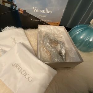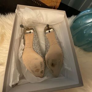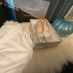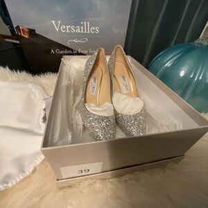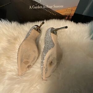 Signature coarse glitter stiletto in Champagne. Gorgeous shoe, elongates the leg, dainty. Jimmy Choo size (37.5)