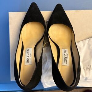 Jimmy Choo Romy 85 in black suede. Great condition (as shown in pictures), worn once to a wedding, no scratches to suede. Comes with original box and dust bag. Currently retails for $825 before tax.