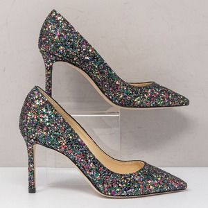 Jimmy Choo Romy 85, Size 35 EU (5 US) Boho Mix Coarse Glitter Heels