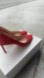 Step into luxury with these Jimmy Choo red suede heels, featuring a sleek pointed-toe design and a classic stiletto heel. The vibrant red color and velvety suede material make these shoes a sophisticated choice for any occasion. With their timeless silhouette, they offer both elegance and versatility.